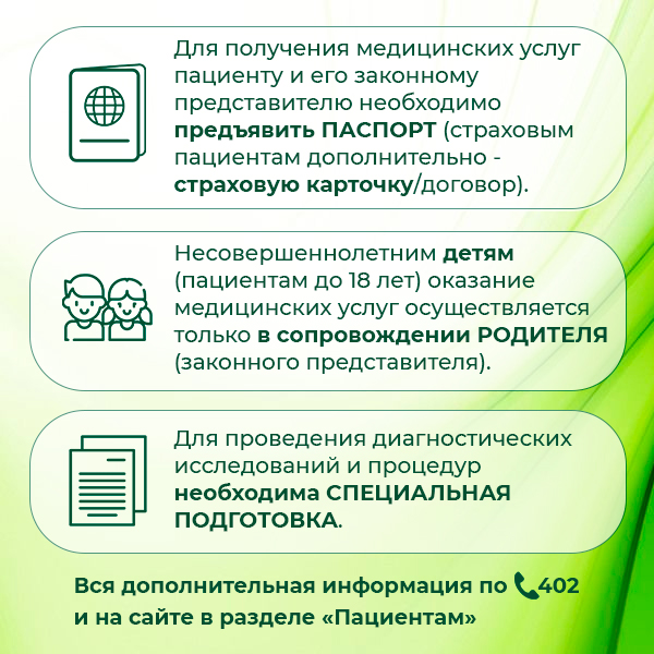 Записаться на услугиПеред заказом услуги ознакомьтесь, пожалуйста, со следующими документами:Информация, предоставляемая пациенту до получения согласия на обработку персональных данных Согласие пациента, обращающегося на сайте, на обработку персональных данных