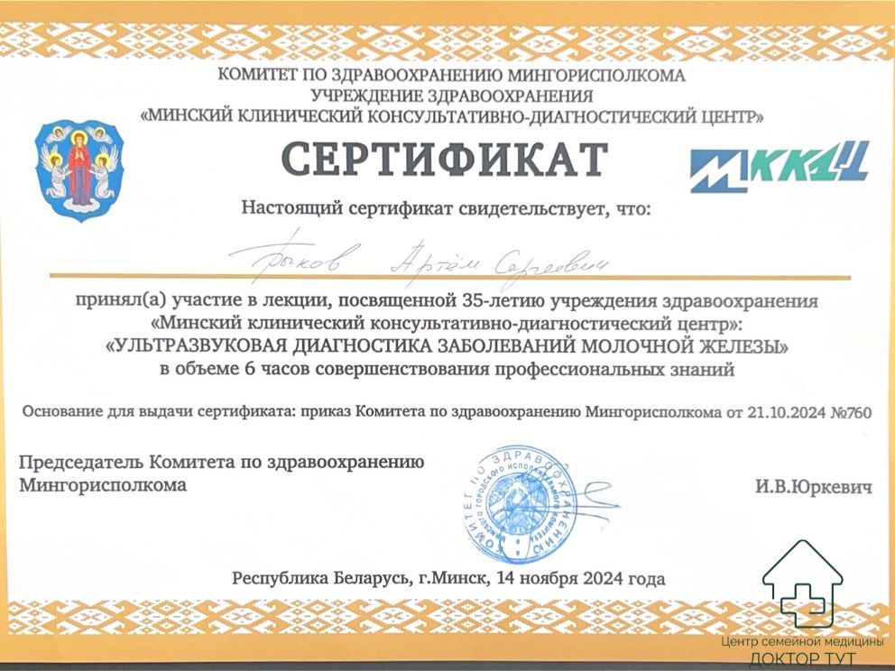 - 2024 Лекция «Ультразвуковая диагностика заболеваний молочной железы»
