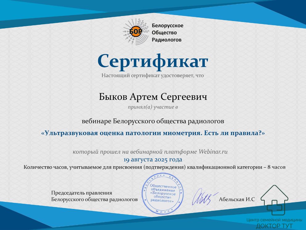 - 2025 Вебинар «Ультразвуковая оценка патологии миометрия. Есть ли правила?»