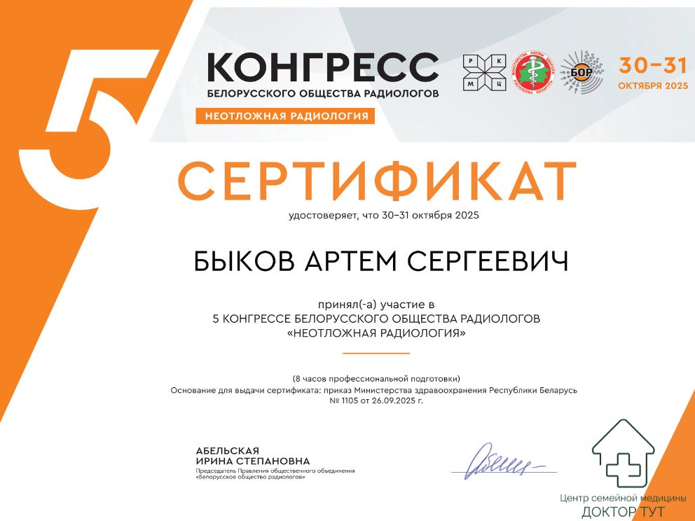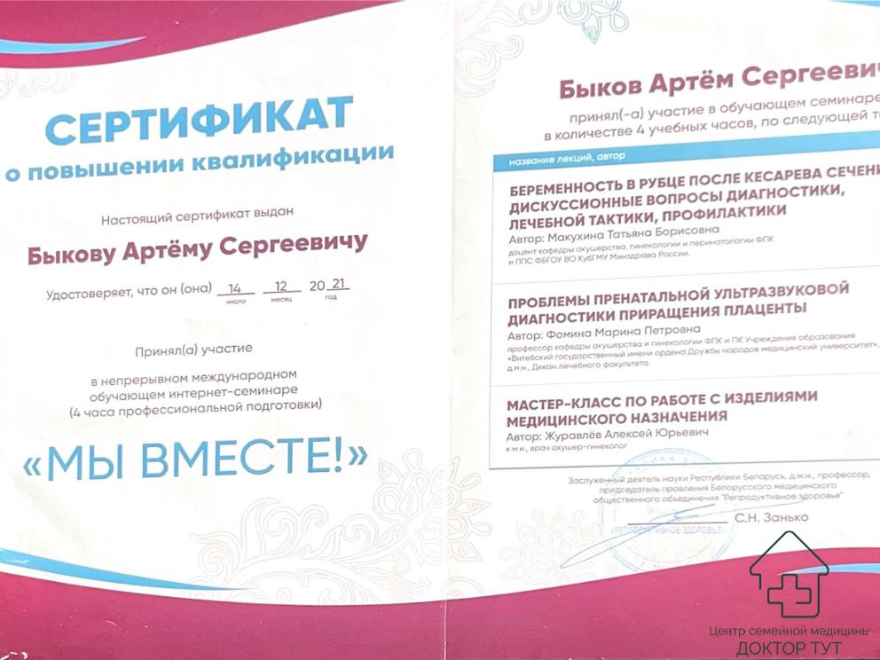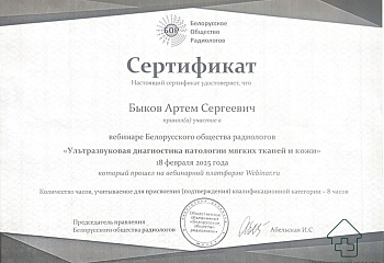 - 2022 Интернатура по специальности «Диагностика (ультразвуковая диагностика)»